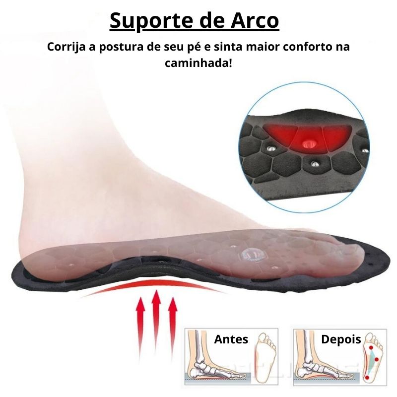 A Palmilha Ortopédica Magnética é ideal para quem passa horas em pé ou sente desconforto ao caminhar.